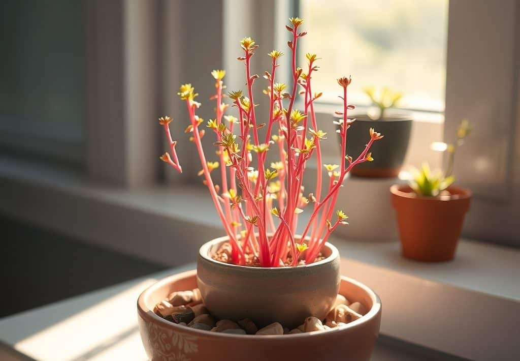 V miestnosti s teplotou okolo 18–22 °C klíčenie prebieha rýchlo. Po 2–5 týždňoch sa objavujú stonky. Prvé listy sú často vrásčité a sfarbené. Približne 20 dní po objavení sa v kvetináči môže vytvoriť hustá poduška z ružových stoniek. Ak vyklíčia viaceré jadrá, okamžite vznikne efekt „mini lesa“. Odtiene ružovej a medenej farby vytvoria živý akcent na vašom okne.